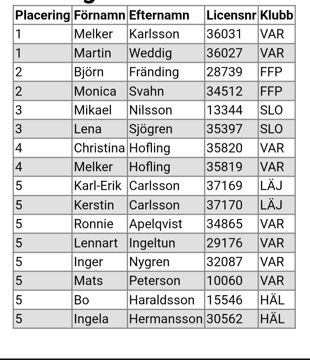 Komplett resultat: