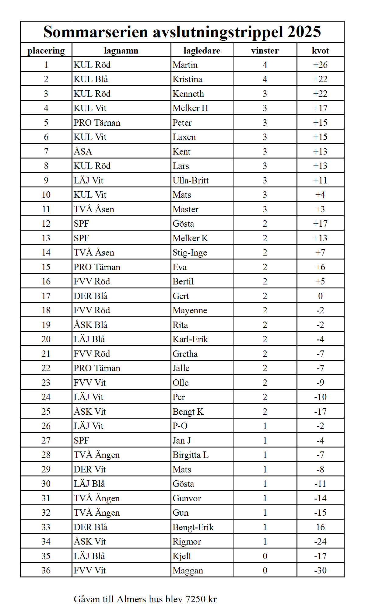 Sommarserien avslutades med trippelspel där 36 lag kom till start.