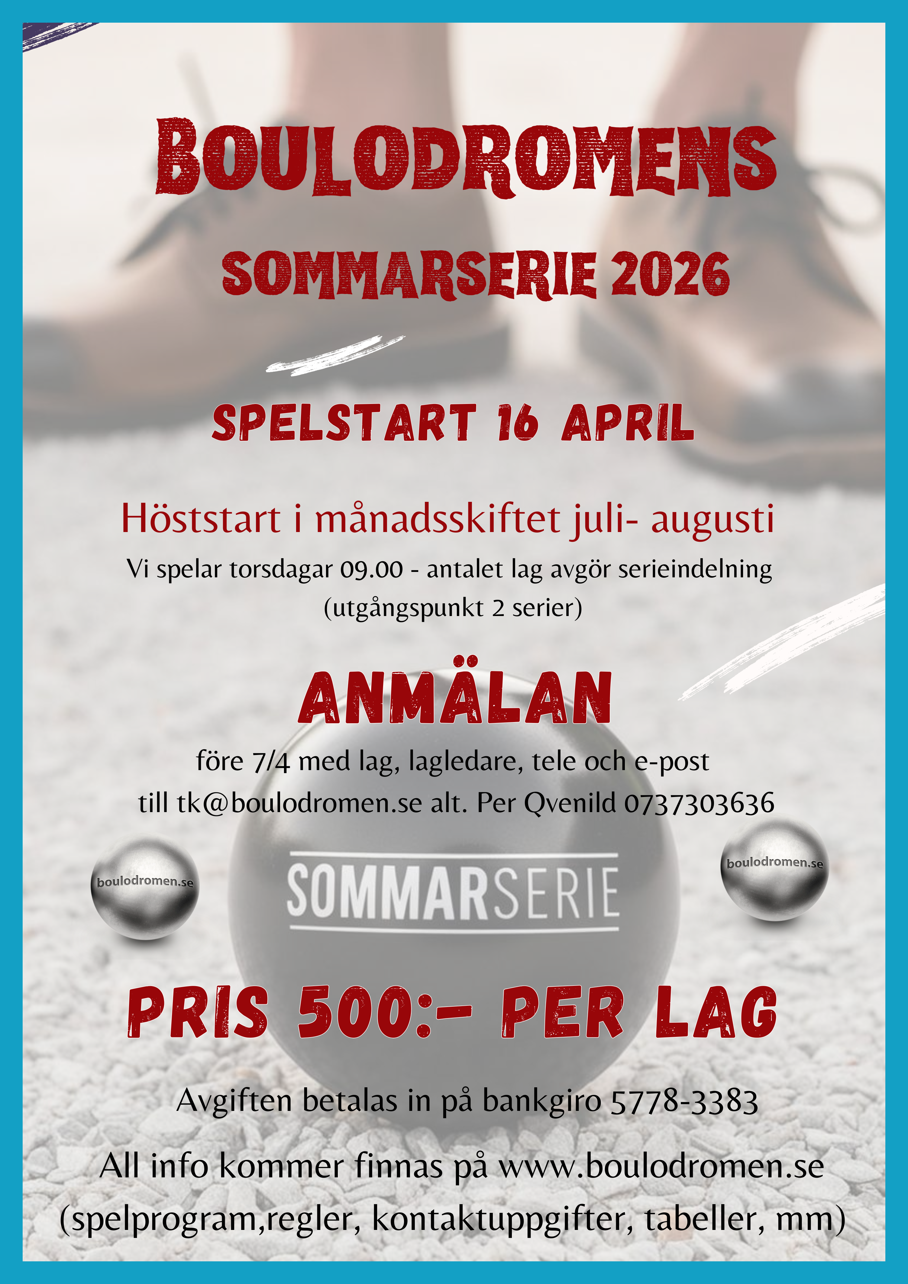 Välkomna till Boulodromens sommarserie 2025. 19 lag är anmälda.