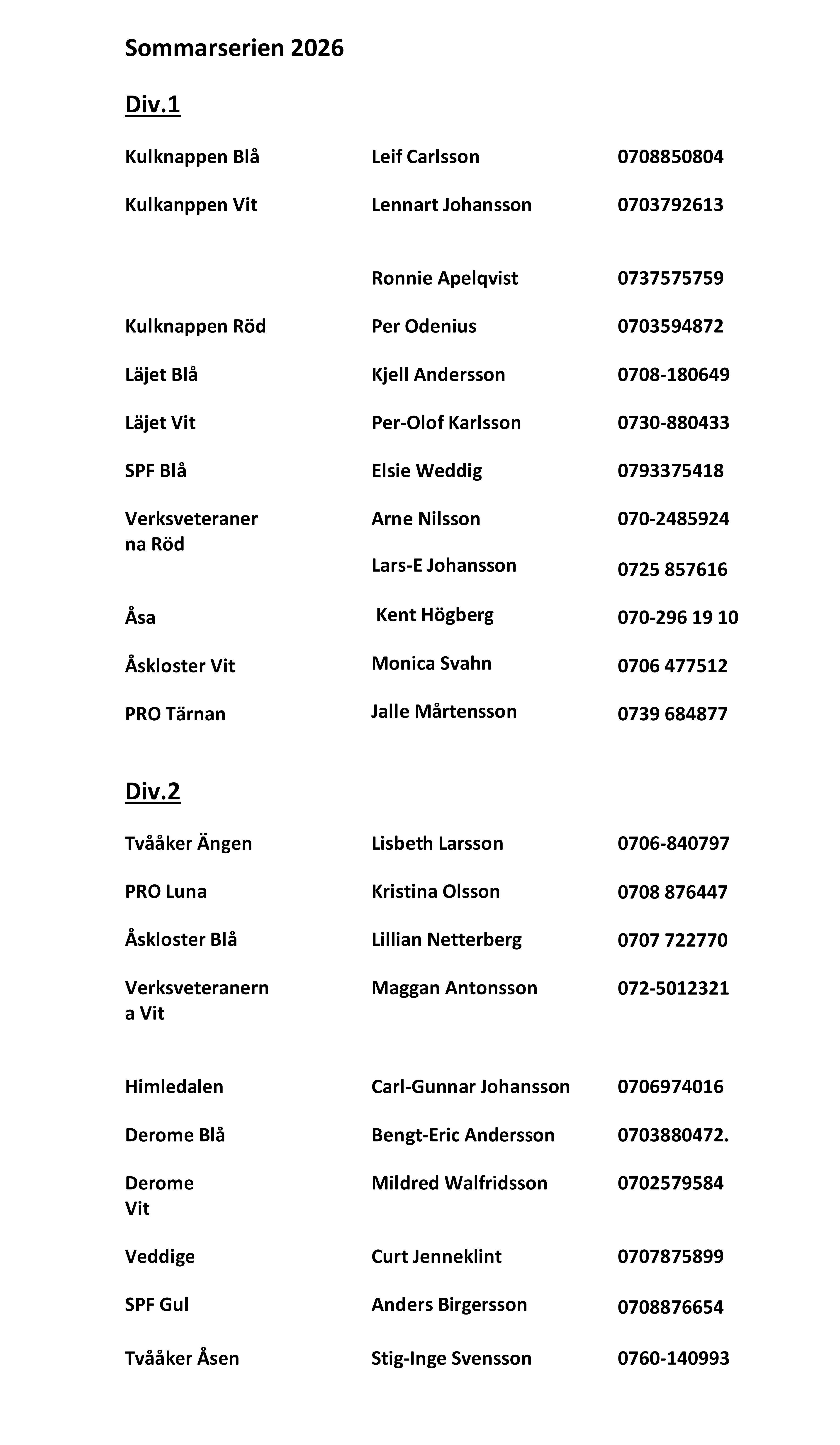 Telefonlista lagledare: