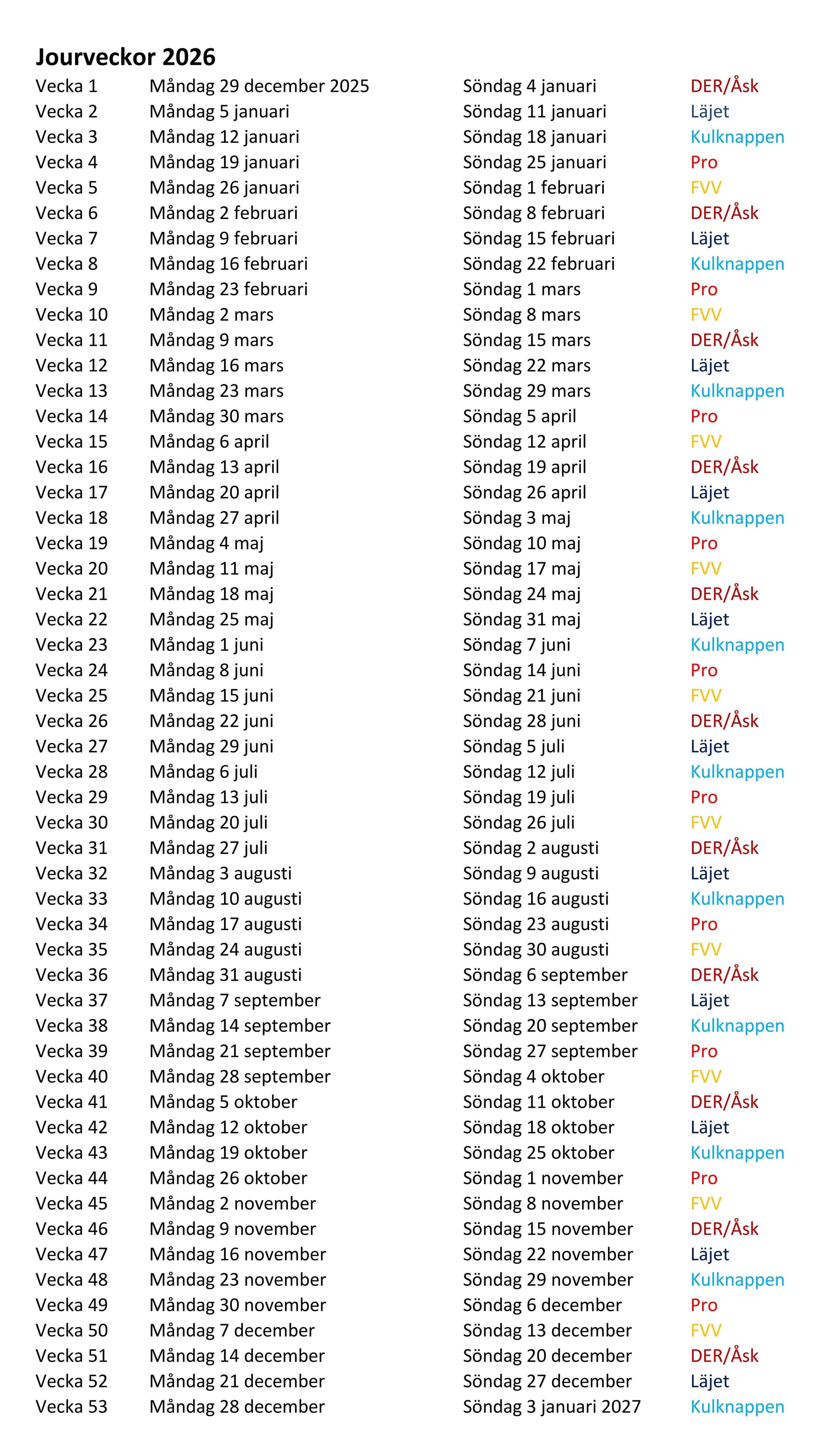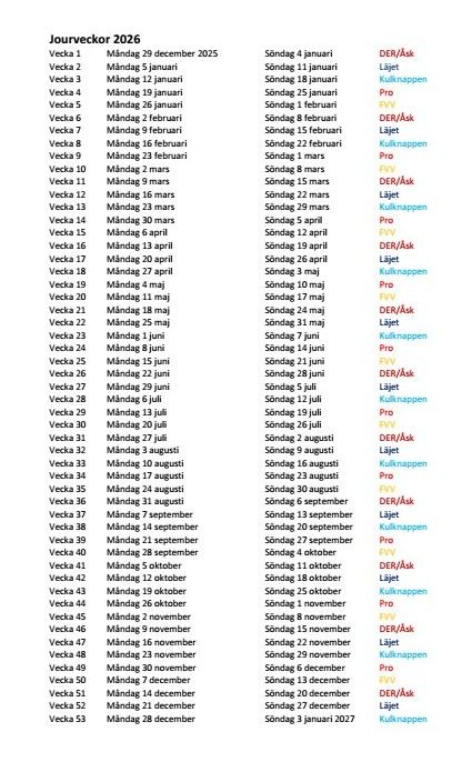Jourveckor 2026