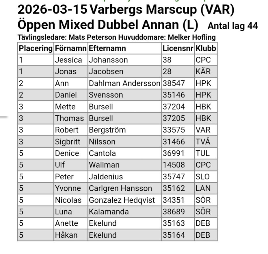 Resultat Februaricupen 2026