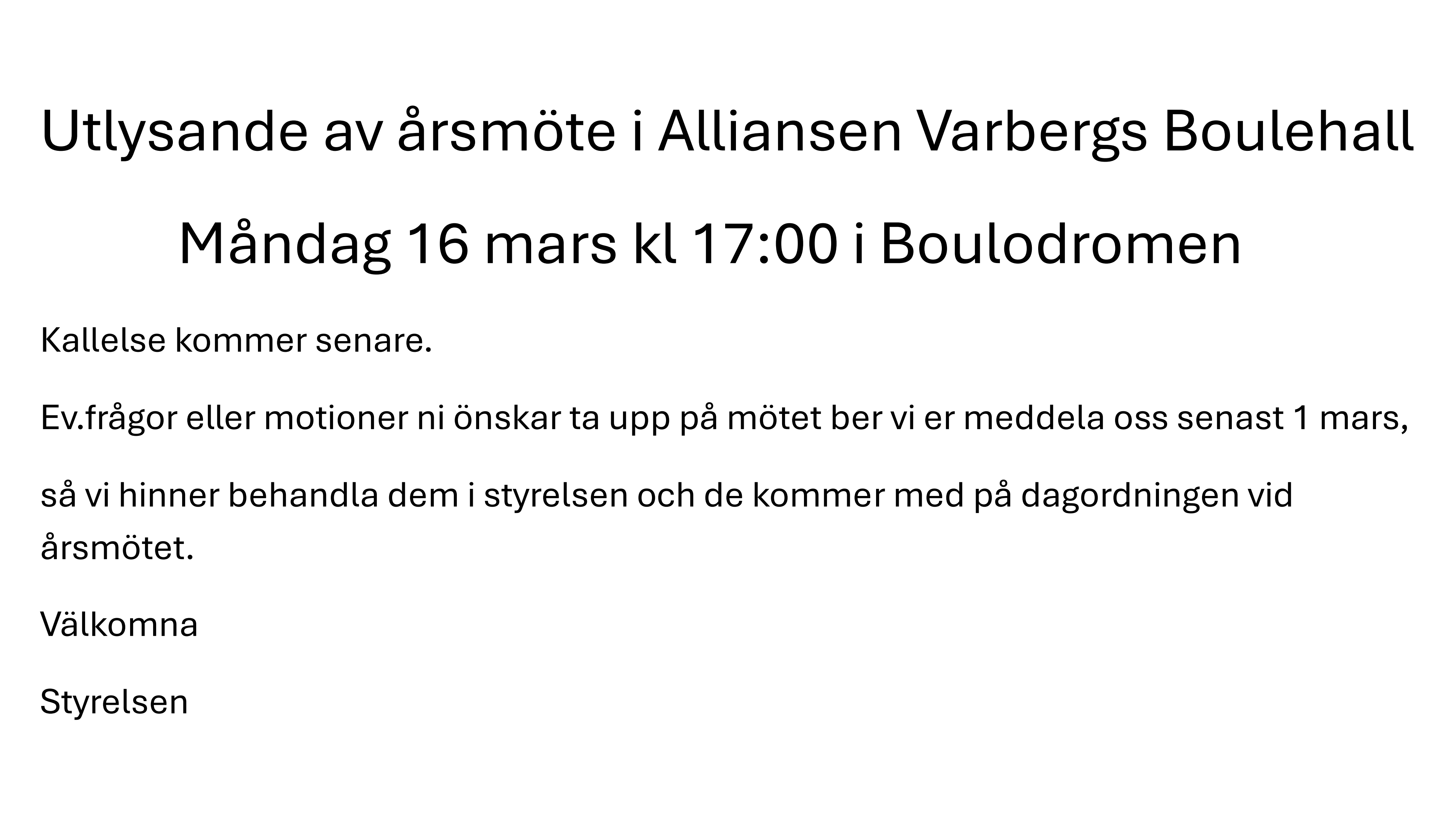 Utlysning av Årsmöte